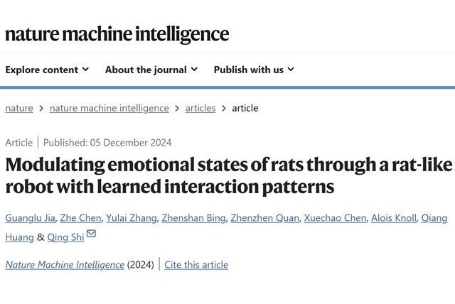 北京理工大學(xué)機(jī)電學(xué)院石青教授團(tuán)隊(duì)在機(jī)器人-動(dòng)物交互領(lǐng)域取得重要進(jìn)展。