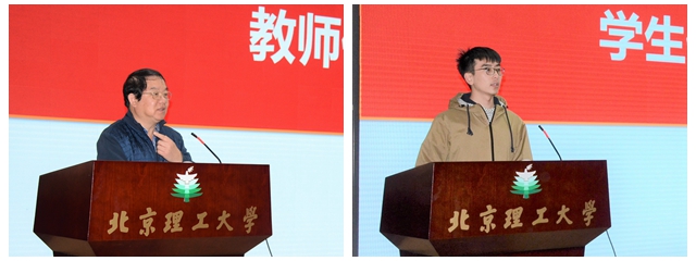 教師代表羅慶生教授發言,他總結了機電學院為培養本科生創新能力所采取的政策及在各種雙創活動中取得的成果,同時鼓勵同學們結合創協提供的優質資源,提升理論與實踐相結合的創新能力。