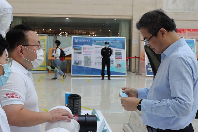 宇航學院飛鷹隊“獵鷹”無人機、機電學院便攜式爆炸物檢測儀、機械與車輛學院無人智能巡檢與運輸無人平臺和酷黑科技飛天工兵、光電學院耐德佳超大視場角AR頭戴顯示設備、信息與電子學院星網測通和垃圾分類機器人、自動化學院瞳賦AI紅外測溫設備和無人機全自主柔性起降系統、材料學院藿然而愈團隊、化學與化工學院MOFilter分子智能技術及其產品參與現場展示。