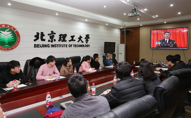 校黨委書記趙長祿:2018年“兩會”是全面貫徹黨的十九大精神開局之年的歷史性盛會,內容非常豐富,對決勝小康“三大攻堅戰”等重要任務作出了一系列重大決策部署。這些決策部署與黨的十九大精神一脈相承、一以貫之、高度契合,通過法定程序,使黨的主張成為國家意志,把黨的方略鋪展為改革發展實踐,將黨的目標熔鑄于億萬人民的共同奮斗。尤其令人振奮的是,在十三屆全國人大一次會議上,習近平全票當選國家主席、中央軍委主席,充分體現了黨心所向、民心所盼、眾望所歸,有力彰顯了全黨全軍全國各族人民對習近平總書記這位國家的掌舵者、人民的領路人的充分信任和堅定信心。新時代對高等教育提出了新的使命和任務要求,北理工黨委將進一步用習近平新時代中國特色社會主義思想武裝師生頭腦,使全校師生員工牢固樹立“四個意識”,堅定“四個自信”,堅決維護習近平總書記的核心地位,堅決維護黨中央權威和集中統一領導,堅決擁護新一屆領導集體;將更加緊密團結在以習近平同志為核心的黨中央周圍,用偉大創造精神、偉大奮斗精神、偉大團結精神、偉大夢想精神激勵師生,團結師生、依靠師生、尊重師生創造,圍繞立德樹人根本任務,面向國家重大戰略需求,時不我待、只爭朝夕、上下同心、接續奮進;苦干實干加油干,加快一流大學和一流學科建設,加快推進內涵式發展,扎根中國大地建設體現國家意志、大學使命與擔當的世界一流大學。