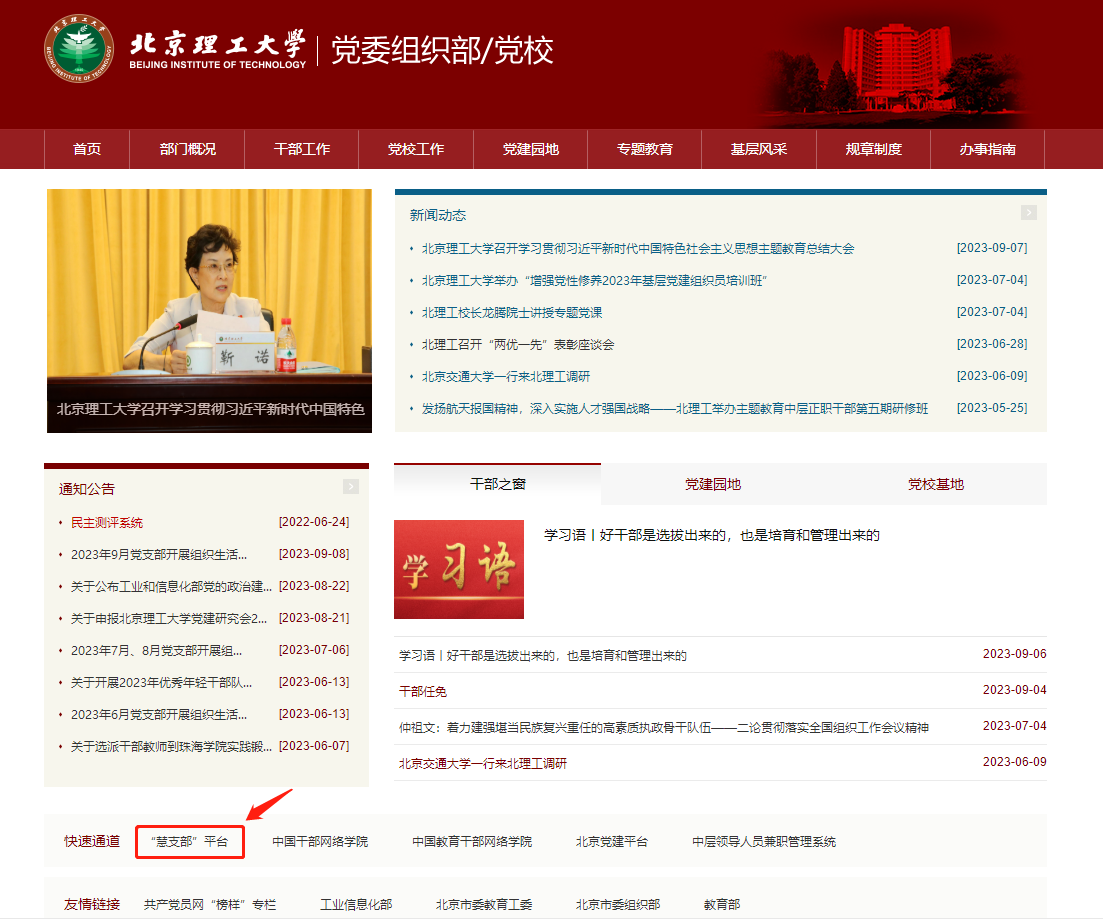 2. 登錄入口:PC端:輸入http://zhdzb.bit.edu.cn/或通過組織部網站“慧支部”平臺入口進入。