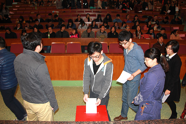設(shè)計學(xué)院黨員們嚴(yán)肅認(rèn)真的選出了自己推薦出席校黨代會的學(xué)院代表,并鄭重的將選票投入到票箱中。