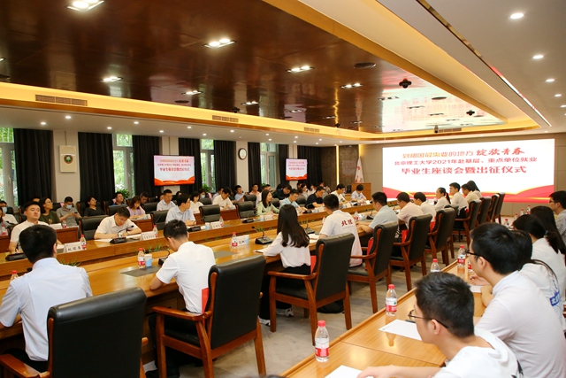 6月24日下午,北京理工大學2021年赴基層、重點單位就業畢業生座談會暨出征儀式在2號辦公樓133會議室舉行。