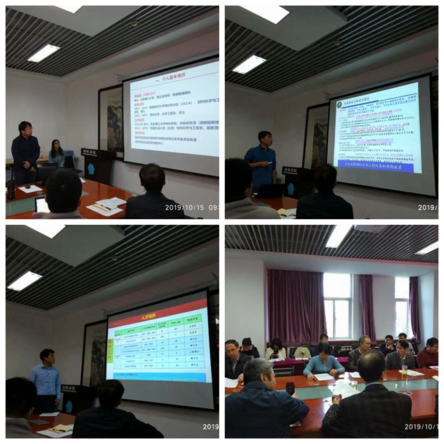 10月15日,材料學院工會主辦的2019年下半年的材料學院“青年教師季”活動第一場考核初體驗于順利進行。材料學院工會青年委員蔡政旭組織了材料學院和前沿交叉科學研究院的青年教師在5號樓502會議室聆聽了新體系教師聘期考核答辯,認真聽取學習了教師在入職之后的教學科研工作上的經驗。材料學院黨委書記張青山、副院長馬壯、副院長李樹奎和院長助理陳棋等參加了活動。
