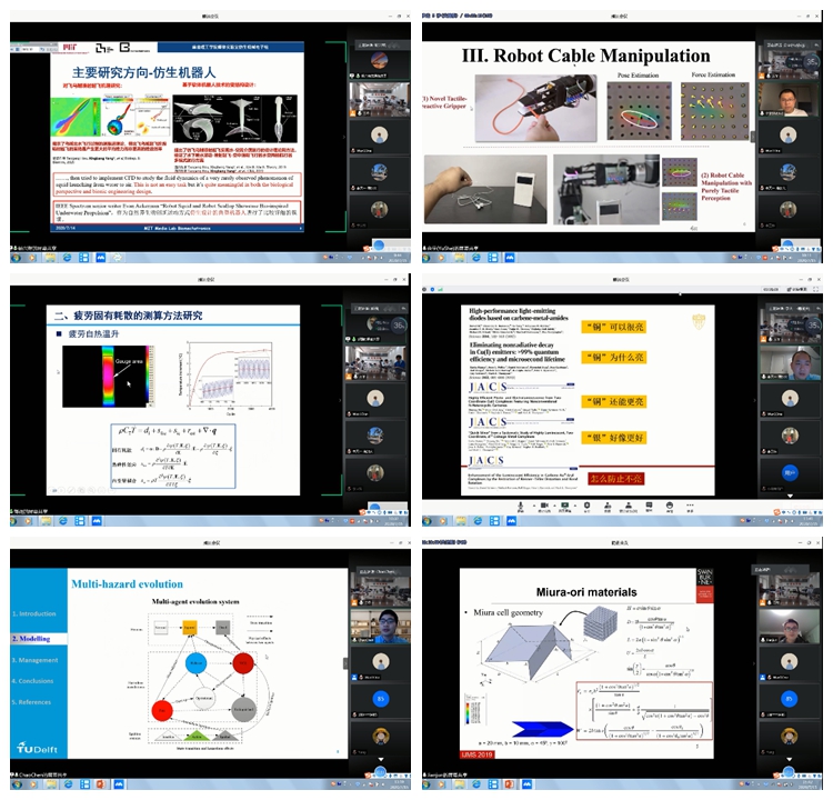學術交流匯報環節,來自斯坦福大學、麻省理工學院、南加州大學、東京大學、代爾夫特理工大學、科羅拉多大學博爾德分校、南洋理工大學、悉尼科技大學、英國諾丁漢大學、荷蘭埃因霍溫理工大學、華盛頓州立大學、清華大學、哈爾濱工業大學等的18位海外青年學者通過視頻會議的形式,和與會人員交流和探討了各自研究領域的研究進展和前沿問題。學院老師針對青年學者的報告內容與其進行了熱烈討論。