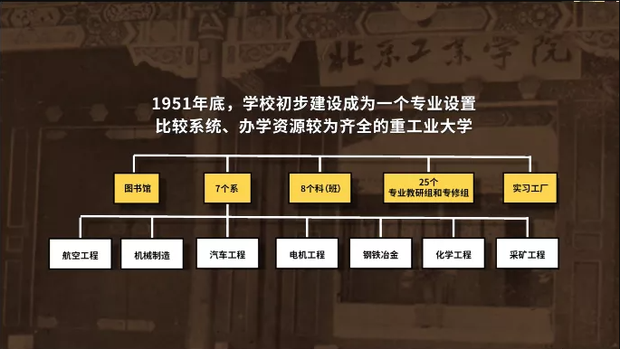 短短不到四年中,華北大學工學院遷入北京、完善學科;建強師資、擴大校園;廣錄英才、規范建設,奠定理工并重的發展條件。完成為新中國建設第一所重工業大學的各項準備,也具備了今天“北京理工大學”這一高等學府的重要基礎。