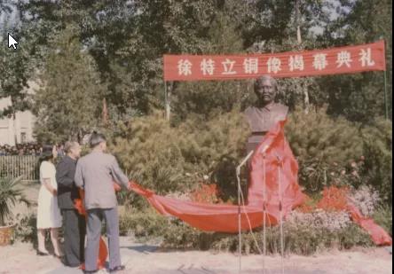 1986年9月,時任中共中央書記處書記習仲勛(中)和北京工業學院院長朱鶴孫(右),共同為在我校中心花園落成的徐特立銅像揭幕,該銅像由自然科學院校友和廣大師生共同發起倡議,經中央批準后建立