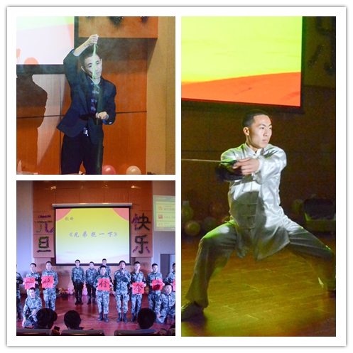晚會在同學們自編自導自演的短片中拉開了帷幕。隨后,在國防生樂隊的《紅日》中,元旦晚會正式開始?,F場不僅有來自國防生大隊骨干們的新年祝福,更有精彩紛呈的相聲、小品、魔術表演。值得一提的是合唱《兄弟抱一下》與《當穿上軍裝那一刻》。前者由精武訓練隊員合作,展現了他們在訓練中所結下的濃濃戰友情;后者則重現了國防生的日常生活與心路變化,引起場下同學們的共鳴,贏得了熱烈的掌聲。