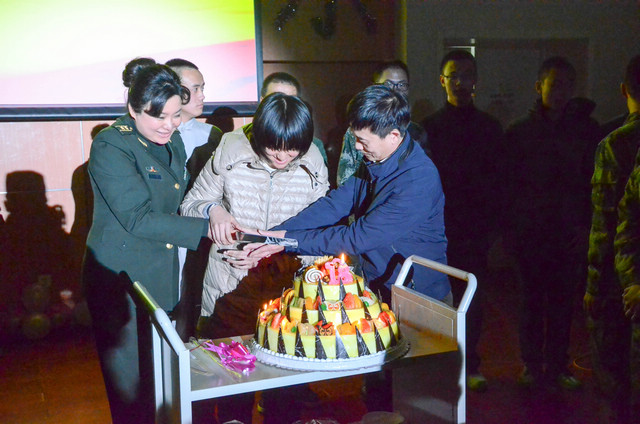 最令人感動與驚喜的,則是晚會預設的“神秘環節”。選培辦為18周歲的同學精心準備了蛋糕,既是過一個集體生日,也是舉行一場特殊的成人禮。選培辦主任尤靜和校長助理姚利民親自為大家切分蛋糕。姚校長助理即興發表了熱情洋溢的講話,表達了對國防生誠摯的祝福和真心的祝愿,教導同學們要倍加珍惜國防生這個光榮的稱號,鼓勵大家自立自信自強,成長成人成才!聆聽領導們的諄諄教誨,品味領導們的真摯祝福,同學們不僅感受到了無微不至的關懷,更在千里之外的寒冬中感受到了如家一般的溫暖。