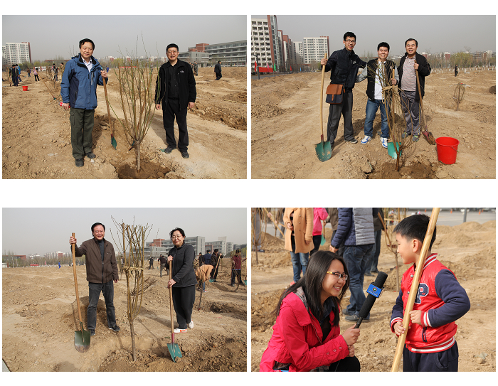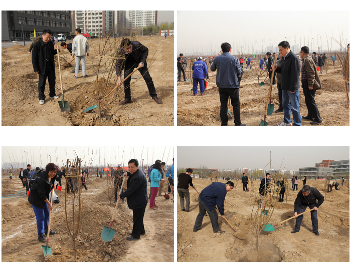 在引導組的引領下,志愿者們順利到達自己的種植地點,個個精神飽滿,摩拳擦掌,躍躍欲試。志愿者們在組內分工合作:扶樹苗、填土、接水,一個個樂此不疲。縱使烈日炎炎,卻阻擋不了志愿者們的植樹熱情,滴滴汗水沁入泥土,滋潤著一顆顆美麗的心靈。志愿者們熱情飽滿,干勁十足,共同營造了一幅初春朝氣蓬勃的景象。校領導們在烈日下,挽起袖子,拿起鐵鍬,放樹苗,填土,澆水一氣呵成,細心地栽培著,校領導們與植樹志愿者們一起在暖春三月里體驗了一把與大自然親密接觸的樂趣。