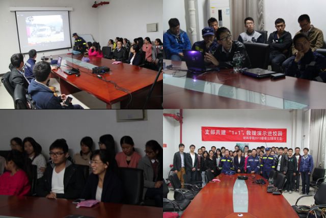 為了將共建活動更加深入可持續(xù)的開展下去,兩個黨支部充分發(fā)揮各自的優(yōu)勢,互相協(xié)作,互通有無,進行了主題為“醫(yī)療急救與材料失效知識共享”的分享會。救援隊員為同學們普及了醫(yī)療救援的常識,幫助同學們在日常生活中正確的進行簡單的醫(yī)療救援;學生黨支部結合救援設備和材料存在的問題做了“材料的失效與變形”的專業(yè)報告,為救援隊提出了一些建議,幫助救援隊提高救援設備性能。兩個支部建立起長期的設備解決聯(lián)系機制,由學生支部提供技術支持,由救援隊支部提供實際操作體驗,大家利用各自專長和專業(yè)的材料檢測、分析、改性方法來改進救援設備,為民防救援出一份力。