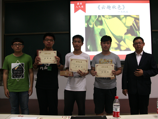 接著,“生命之家”宣傳部部長曹銘銘宣布了在“生命之美”攝影比賽中取得優(yōu)異成果的同學(xué)們。并展示了他們優(yōu)秀的作品,由劉惠康老師為獲獎(jiǎng)作者頒發(fā)獎(jiǎng)狀和獎(jiǎng)品。隨后,由劉惠康老師致辭,對(duì)“生命之美——生命科學(xué)文化月”系列活動(dòng)做了總結(jié),并對(duì)本次活動(dòng)取得的成果給予肯定,對(duì)每一位參與活動(dòng)的同學(xué)給予認(rèn)同。他還鼓勵(lì)同學(xué)們多參與到類似的活動(dòng)中去,在活動(dòng)中不斷的提高自己綜合能力。