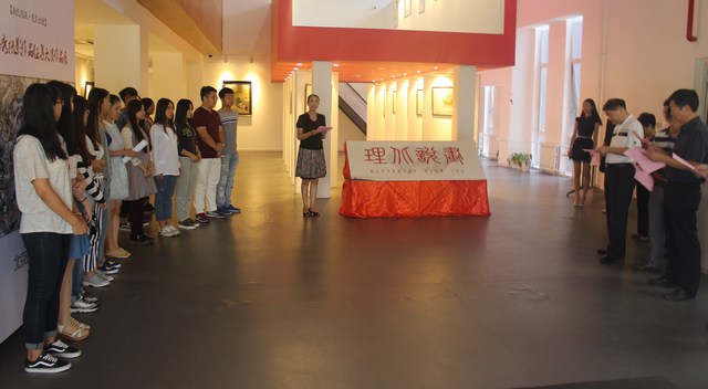 項昌樂與郭宏共同為大賽優(yōu)秀作品展覽揭幕,并為獲得一二三等獎的同學(xué)頒獎,設(shè)計學(xué)院2014級碩士研究生李爽同學(xué)作為獲獎代表發(fā)言,她表示此次比賽不僅為學(xué)生提供了展示自己繪畫水平的平臺,并能通過這次比賽表達對母校的感激之情,為校慶獻禮。