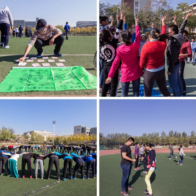 此次素質拓展活動在良鄉校區北區籃球場、南區籃球場和南區足球場同步進行。活動邀請到34位專業培訓師,歷時9個多小時完成了對于來自136個班級的2015級新生的素質拓展訓練。
