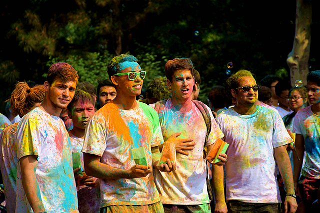 比賽的第一個環節是“校園長跑趣味賽”,身穿白色T恤手持彩跑粉的選手一邊奔跑,一邊將各色彩跑粉向其他的選手拋灑,賽事服務志愿者也用道具向整個方陣噴射彩跑粉,整個方陣瞬間變得五彩斑斕,彰顯著青年學生多彩的青春活力。同學們也在游戲互動中增進了交流,感受著體育運動的樂趣。