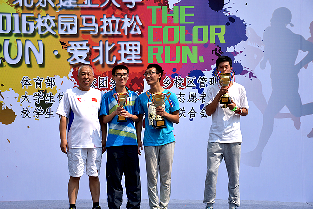 經過激烈的爭奪,最終機械與車輛學院葉琪、材料學院許純玲、法學院郝凌宇分獲女子冠亞季軍 ,機械與車輛學院姜浩博、計算機學院梁維森、自動化學院賈相帥分獲男子的冠亞季軍,其中姜浩博實現了2015年校園馬拉松、冬季越野賽、2016年校園馬拉松的“良馬三連冠”。李和章、郝志強分別為男女獲獎選手頒獎。