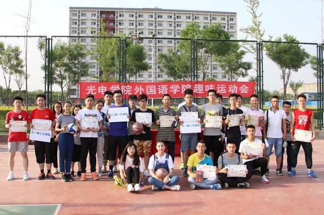 光電學院趣味運動會(良鄉賽區)比賽是聯合外國語學院共同舉辦的。5月9日下午2:00,聯合趣味運動會在良鄉校區北校區籃球場拉開帷幕。光電學院黨委副書記、副院長盛筠,外國語學院黨委副書記、副院長周芳集、兩學院部分老師以及良鄉校區的六支代表隊參加了開幕式。
