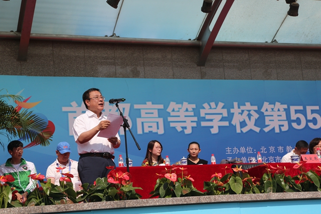 隨后,北京市教委主任劉宇輝致開幕辭。首先,他對承辦本屆運動會的北京理工大學表示衷心的感謝。他說,此次是一次相互交流的盛會,也是對各高校體育工作的一次檢驗。希望全體學生運動員發(fā)揚“更高、更快、更強”的奧林匹克精神,自信自強、奮力拼搏,希望參賽高校以本屆運動會為契機全面提升學校體育工作的水平和質(zhì)量。最后他預祝運動員取得優(yōu)異成績和本屆運動會取得圓滿成功,并邀請副市長王寧宣布運動會開幕。
