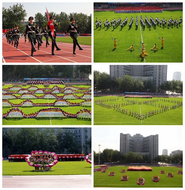 運動會開幕式上,北京理工大學1300位同學帶來大型團體操表演。表演分為《文脈傳承  軍工魂魄》、《活力青春  精彩校園》、《傳統(tǒng)文化  花樣綻放》、《心中有國  復興民族》4個篇章,開幕式表演集中體現(xiàn)了“更快、更高、更強”的體育精神,呈現(xiàn)出北京理工大學作為新中國第一所國防院校的“延安根、軍工魂”的深厚文化底蘊,充分展現(xiàn)了當代大學生傳承中華優(yōu)秀傳統(tǒng)文化、踐行社會主義核心價值觀、自強不息奮發(fā)報國的精神面貌。