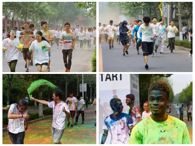 “無(wú)色彩、不青春”,隨后活動(dòng)進(jìn)入“校園彩跑”群眾趣味比賽單元,參賽選手身著白色T恤,手持彩跑粉,在藍(lán)、粉、綠、黃、紅交疊的彩粉中,盡情奔跑,整個(gè)方陣瞬間變得炫麗繽紛,整個(gè)賽場(chǎng)沉浸在一片歡快聲中,釋放青春能量,燃動(dòng)多彩校園。