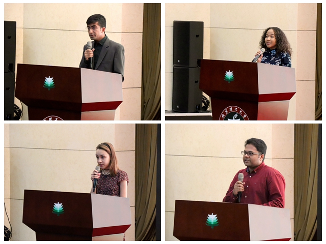 2019屆航空宇航科學與技術專業巴基斯坦籍碩士畢業生那一德作為校友代表發言,在校期間學習成績優異的他表示,是北理工提供了優秀的學習平臺和廣闊的發展空間,使自己不斷取得進步和突破,他希望各位新同學能夠珍惜機會、把握機遇,勇于追求自己的夢想。在校生代表、2016級計算機科學與技術專業烏干達籍本科生懿虹分享了自己選擇北理工的初心和成長的經歷,寄語新生要明確個人目標、制定學習計劃,為實現價值和夢想而不懈努力。新生代表、計算機科學與技術專業馬來西亞籍碩士生米蘭在發言中表達了自己對即將開始的“留學北理”生活的期望,鼓勵新生要給自己樹立一個目標,并為之拼搏和奮斗。新生代表、令聞書院俄羅斯籍本科生安娜講述了自己選擇中國和北理工的原因,家中幾代人從事航天領域方面的工作,使從小就喜愛中國文化的她深受影響,而北理工強大的科研實力使她堅信這里就是開啟自己夢想的地方,希望自己在“留學北理”中迎來成長和蛻變,為人類的航空航天事業貢獻力量。