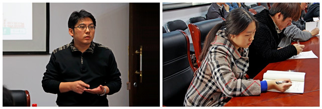 在講座中,王征老師主要講述了校園新聞的分類、新聞稿件寫作提升的基礎方法、新聞撰寫的結構剖析、報道撰寫的結構剖析、新聞宣傳意識的樹立以及宣傳攝影概要等六個方面內容。王征老師用詼諧幽默的語言分享了自己對于宣傳工作的心得感悟,深入淺出的講解了新聞寫作的各項要領,同學們認真聆聽并仔細記錄。