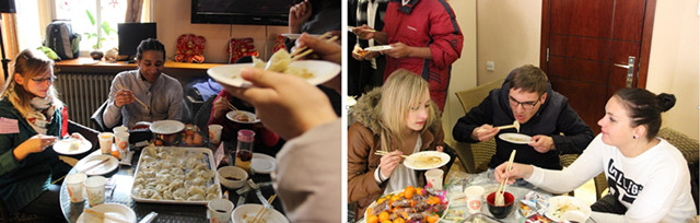 包餃子是中國年夜飯的傳統活動,學生們搶著和老師們一起洗菜、和面、拌餡兒,和老師們學著包餃子,他們中很多人都是第一次包,包出的餃子也像模像樣。他們興奮地展示自己親手包的餃子,體味著中國人歡歡喜喜、團團圓圓過大年的心情。餃子出鍋后,老師和同學們一起,圍坐在電視機前,一邊觀看2013年春晚的精彩節目,一邊享用著自己的勞動果實,一邊暢談著過去一年的收獲以及對來年的美好祝愿,非常開心。通過參加這些豐富多彩的活動,使得在北理的外國留學生們深切地感受了中國年。