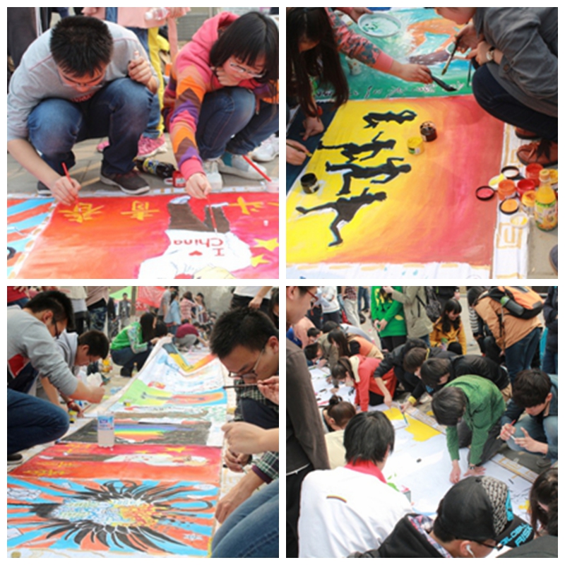 同學們在100余米的長卷上作畫,每幅作品風格不一,有的通過色彩的對比,運用繪畫中的補色原理,描繪出美麗的七彩中國夢;有的通過寫意的方式,描繪對美好未來的追求;有的通過抽象與聚象結合的方式,展現只有奮斗的青春才最美麗。