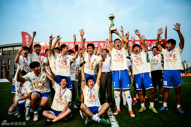 2015年6月18日,伴隨著一聲哨響, 2014-2015特步中國大學生足球聯賽超級組總決賽落下帷幕。在多日降雨的南京,北京理工大學足球隊克服天氣、場地和客場等不利因素,奮勇拼搏,最終,憑借下半場獲得的一粒點球,由隊長韓光徽破門,以1:0戰勝河海大學,實現了自己的“八冠王”和第二次“三連冠”之夢。同時,北京理工大學隊主教練袁微獲“最佳教練員”獎項,門將劉天鑫獲“最佳守門員”獎項,韓光徽獲“最佳運動員”獎項。