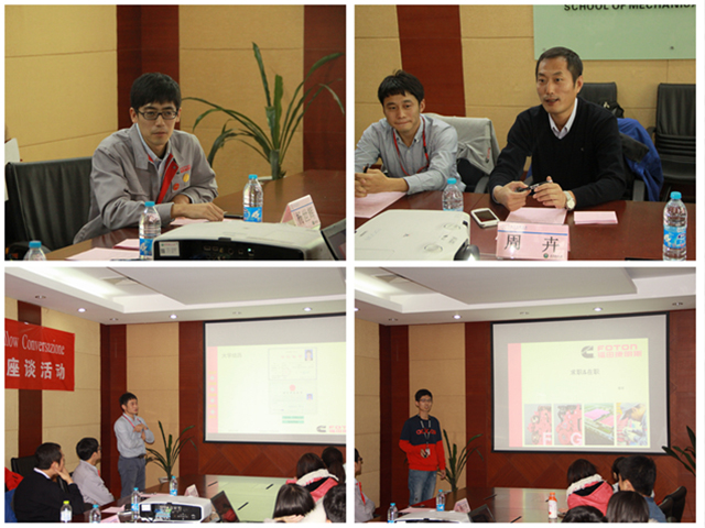 頒獎典禮結束后,康明斯林慰梓博士獎學金座談會在一號樓233會議室召開,北京福田康明斯發動機有限公司人力資源部招聘主管楊世輝、ISG 發動機技術總工周卉、客戶服務部服務工程師徐中鈞、客戶服務部培訓講師范月等參加了本次座談。在座談會上,楊世輝主管為同學們宣講了實習項目,周卉技術總工等校友員工代表結合自身成長經歷傾情交流、分享經驗,同學們就學習、求職生涯中與個人成長等多個方面積極提問,座談會在輕松愉悅的氛圍中順利結束。