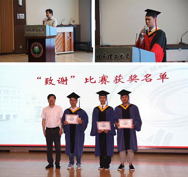 博士畢業(yè)生彭劍坤代表全體畢業(yè)生發(fā)言,他深情回憶了在北京理工大學(xué)度過的美好學(xué)習(xí)時光,表達(dá)了對母校、對老師、對同窗的感恩之情。制造工程系王西彬教授代表全院教師對同學(xué)們順利完成學(xué)業(yè)表示熱烈的祝賀,他鼓勵同學(xué)們繼續(xù)堅持思考和學(xué)習(xí),堅持夢想和創(chuàng)造,認(rèn)真做事、踏實做人,期待同學(xué)們?nèi)〉酶蟮某删汀?/p>