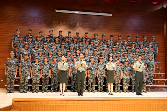 9月11日,北京理工大學2016年學生軍訓“慶祝建黨95周年”合唱比賽在良鄉校區音樂廳舉行。軍訓旅各副總指揮、部分營教導員以及各營指導員代表出席活動并擔任評委。合唱比賽以營為單位進行,每個代表隊表演必選曲目和自選曲目兩首歌曲。