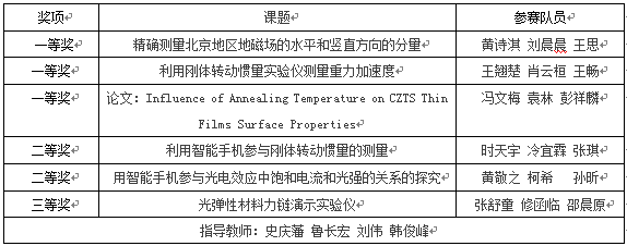 北京市大學生物理實驗競賽是北京市教委主辦的大學生學科競賽,每年有近四十所高校參加。競賽宗旨是為了激發大學生對物理實驗的興趣,培養大學生的創新能力、實踐能力和團隊協作意識,發掘大學生潛能,促進物理實驗教學改革。今年的競賽題目是:(1)組裝儀器測量與地球有關的參數;(2)用智能手機參與完成經典的物理實驗或設計新的物理實驗;(3)物理思想清晰,物理知識點明確的實驗制作;(4)物理思想清晰,與實驗有關的科研論文或教學論文。競賽采取匿名方式,由評審專家根據作品的科學性、新穎性、實用性以及選手現場實驗、展示、答辯等表現進行打分。