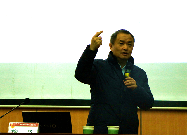 梅宏院士以《信息科學技術漫談》為題,從人類經濟活動和三類產業和的發展開篇,自人類的全球化進程、經濟發展的長波規律、第三次工業革命等多個視角,闡述了信息技術在人類社會發展中起到的作用,以及信息技術對當今社會和在未來較長時間內對經濟社會發展的重要意義。“在工業化進程當中,材料、能源和信息成為我們現代社會發展的三個支柱,在知識經濟時代,信息尤為重要,在未來的較長時期,信息技術仍然會是經濟發展主要驅動力”,梅宏院士從數據的角度對信息技術進行了闡釋。他為師生們從信息技術的特點、信息產業的現狀、信息技術對世界的影響等方面對信息科學技術的發展現狀進行了介紹,并以谷歌和蘋果的案例闡述了互聯網科技在創新的時代所扮演的重要角色。梅宏院士認為,信息技術領域包含以下幾個熱點,包括云計算、物聯網、移動互聯網、社交網絡、大數據、虛擬現實等熱點技術領域,針對當前信息技術未來的發展趨勢和所遇到的挑戰,提出了通過追求質變和利用互聯網來突破傳統模式解決不了的一些問題。“信息時代,計算是核心,計算思維應該成為每個人思考和認識世界的重要手段。”梅宏院士說到。