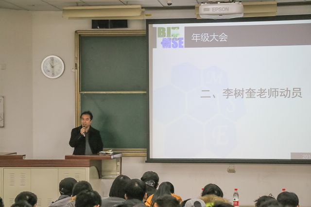 李樹奎老師為同學(xué)進(jìn)行動員,并結(jié)合馬克思思想中的必然與自由關(guān)系,從掛科的嚴(yán)重后果談到成績優(yōu)異帶來的好處。李老師提到自己當(dāng)年在北理學(xué)習(xí)時(shí)也曾是“學(xué)霸”,取得了很多的滿分,優(yōu)異的成績?yōu)樗峁┝嗽S多機(jī)會,也使他收獲了自信和愛情。最后還提醒同學(xué)們掛科并不是那么遙不可及,稍加懈怠就可能淪陷其中,對待學(xué)習(xí)就要提起十二分的精神。最后李老師就下學(xué)期的分專業(yè)事宜進(jìn)行了預(yù)熱。