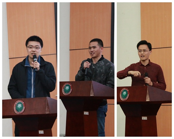 青春榜樣付時堯、葉云、科技創新團隊代表薛曉輝分享了他們的青春故事。付時堯結合實驗室科研項目,用風趣幽默的語言講解了如何進行科研突破,號召同學們在學習中要樹立科研自信,勇于面對疑問,加強基礎課學習。葉云鼓勵大家從低年級開始培養科研意識,積極參與科技創新實踐和競賽,拓寬眼界。薛曉輝用自己團隊參賽經歷告訴同學們,做事貴在堅持,才能有所回報。