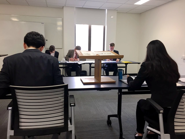 北理工代表隊由法學(xué)院楊寬老師擔(dān)任指導(dǎo)教師,本科生邵美琪、蔡凡、李怡然為隊員。通過賽前幾個月的艱苦準(zhǔn)備,北理工代表隊順利通過了本次競賽的書狀審查和選拔,獲得參賽資格。本次亞太區(qū)比賽分為兩輪,依照參賽隊伍的書狀和初賽庭辯總分排序,排名前四的隊伍進(jìn)入半決賽。初賽階段,北理工代表隊分別對陣新加坡國立大學(xué)、印度國立大學(xué)法學(xué)院、印度班加羅爾大學(xué)、韓國崇實(shí)大學(xué)代表隊。比賽是激烈的,結(jié)果亦是殘酷的。最終,印度國立大學(xué)法學(xué)院、印度班加羅爾大學(xué)、香港城市大學(xué)代表隊晉級半決賽,北理工代表隊以及中國大陸院校代表隊均未能進(jìn)入四強(qiáng)。