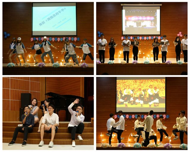 畢業慶典以一段開場視頻拉開帷幕,每位同學大一與大四的對比照片在視頻中展示出四年每位同學的成長與成熟。六位美麗姑娘的開場舞《crazy》點燃了會場內的熱烈氣氛,引燃了全體師生的熱情。劉姣伶等八名同學飽含深情的詩朗誦《畢業頌》,勾起了畢業生們無盡的回憶,表達了對母校、學院深深的不舍和對恩師的感謝。《擁抱你的年華》中同學們用舞蹈表達出與母親真摯的感情和成長的思考。互動游戲環節中,韓燕老師與同學們“你劃我猜”,凸顯出師生之間默契的配合,引得陣陣掌聲。16級學生武潔垚用歌劇選段《月亮頌》向學長學姐表達了真摯的祝福。畢業生們一曲《不說再見》,表達了同學深厚的情誼和對未來的美好希冀。云旦等八位藏族小伙帶來舞蹈《歡樂的弦子》,用熱情洋溢的舞步將慶典推向高潮。