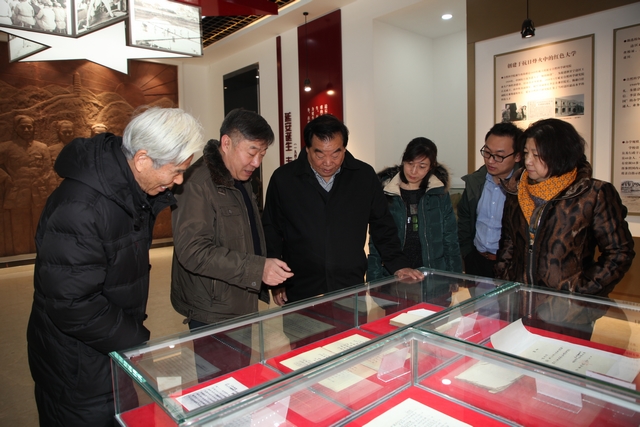 張敬袖、曲虹等陪同黃春平參觀了北京理工大學校史館,校史館館長王民作了講解。