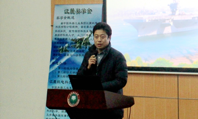 2017年12月28日,北京理工大學(xué)第十屆“江麓獎學(xué)金”答辯儀式在良鄉(xiāng)校區(qū)綜合教學(xué)樓報告廳隆重舉行。“江麓獎學(xué)金”由江麓機(jī)電集團(tuán)有限公司設(shè)立,旨在普及國防科技知識、宣傳國防科技發(fā)展前沿技術(shù)、培養(yǎng)合格的國防科技人才,自2008年設(shè)立以來每年都吸引著大批對軍事非常熱愛的本科生參與評選,本屆評出獲獎學(xué)生15名,每人獎勵6000元。