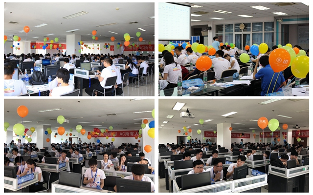比賽在中關村和良鄉兩個賽區同步進行。上午,ACM/ICPC訓練基地教練、大賽評審小組成員林永鋼老師宣布比賽開始,大賽正式拉開帷幕。程序設計大賽是一項旨在展示大學生創新能力、團隊精神和在壓力下編寫程序、分析和解決問題能力的競賽,主要面向本科生和低年級研究生,自2004年至今已成功舉辦十三屆,是我校參與人數最多的科技類競賽之一,歷屆比賽參加總人數達6000余人,已成為我校程序設計愛好者的節日。今年,中關村校區和良鄉校區的兩個賽場共有來自14所高校的239個隊伍650名選手參賽。此次比賽共設置10道題目,采用ACM評分規則,程序正誤由Online Judge系統自動判評。長達5個小時的激烈角逐,不僅是腦力的比拼,而且是耐力的較量。參賽選手爭分奪秒,隨著榜單的不斷刷新,機房上空漸漸升起彩色的云朵。