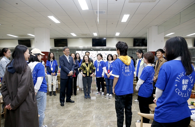 很快校長被知藝書院的“小設計獅”們拉到了剪紙創作活動中,知藝2011班和2023班的“小設計獅們”分組正在用剪刀和硬卡紙、毛氈紙合作創作校園中的標志性建筑剪影作品,用獨特的方式表達出對學校的印象,寄托對大學生活的期待與向往。校長走進學生中去,在與學生的親切交流中,對新生們提出了殷切的希望:“世界一流大學,很重要的一個特質就是要有自由寬容的人文情懷與校園文化,希望你們能夠發揮專業優勢,從建立班級文化做起,推動發揚科學精神與校園文化結合,為世界一流大學建設做貢獻。”