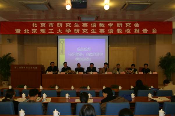 2004年10月30日,時逢北京理工大學研究生院建院二十周年之際,北京市研究生英語教學研究會暨北京理工大學研究生英語教改報告會在北京理工大學國際教育交流大廈三層學術報告廳隆重舉行。出席會議的有我校研究生院梅文博副院長,研究生培養辦公室主任王慶林、副主任林海,各學院主管研究生教育的副院長和人文社會科學學院的教師,來自北京、河北貴州的36所高校和研究機構的84位從事英語教學的專家和教師代表參加了會議。