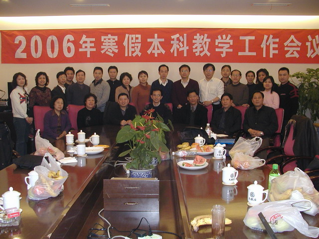 2006年2月15—17日,教務處組織召開了為期三天的寒假教學工作會議。常務副校長李志祥、副校長孫逢春、教務處處長、副處長及各科科長、各學院教學院長以及人事處、學生工作處、實驗設備處、圖書館等職能部門領導參加了會議。會議由教務處處長龐思勤主持。會議議題主要包括本科教學計劃的修訂、全面選課制和提高教學質量、本科教學評估等工作。會議針對以上議題進行了認真熱烈的討論,對新學期的工作進行了部署。會議期間,學校黨委副書記侯光明還專門到會場看望了大家。
