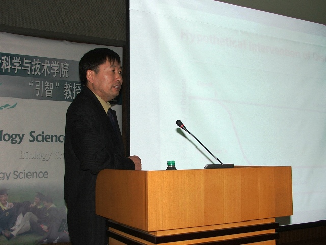 2006年2月27日上午,生命科學與技術學院研究生學術論壇暨“引智”教授系列講座正式開始,本次系列講座有我院研工委承辦。首場講座由生命科學與技術學院院長鄧玉林教授主持,由具有國際聲譽的我校兼職教授李新民教授主講,日前李新民教授被聘為我校生物與醫學藥物學科特區主任。李新民教授在圖書館報告廳為我院研究生及本科生作了一場題為《抗老年癡呆藥物的研發方向和策略》的精彩講座。