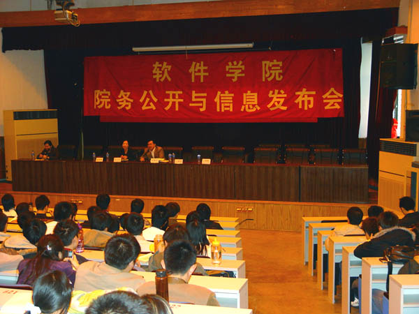 為了進一步加強學院與學生的交流和溝通,讓學生了解學院的建設發展情況,軟件學院于3月24日在七號樓報告廳召開了院務公開與信息發布會。院長付夢印、副書記副院長肖文英、全院340余名學生代表參加了發布會。