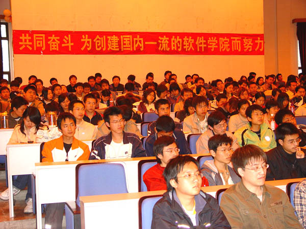 首先,付夢印院長向同學們介紹了學院目前的建設情況和近期發展設想。軟件學院始終以培養“創新型、實用型、復合型、國際化”人才為目標,在進一步加強與企業合作、建設以市場需求為導向的專業方向上上作了很多工作,也取得了一定的階段性成果。學院積極為提高學生的應用實踐能力創造條件。