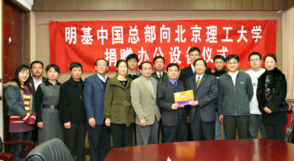 儀式首先由明基中國總部副總經理江明洲先生介紹了一下本次捐贈的初衷和公司的概況。江明洲講到這次能把公司的部分辦公家具和設備捐贈給北京理工大學,為高校教育做點事情,盡點綿薄之力,是明基公司的一件幸事。公司一貫是以傳達真善美、關懷社會、培養人才為企業的宗旨和理念,公司一直希望與高校所交流、多學習共悟培養人才之道校,希望北京理工大學越辦越好,為社會培養更多的英才。隨后校團委書記張啟鴻老師宣讀明基公司捐贈辦公設備的清單。這次明基中國總部向我校共捐贈電腦20套、柜子126件、桌子326件、椅子255件。