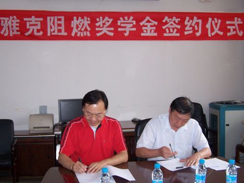 沈錫強董事長首先介紹了雅克公司的基本情況并對材料學院一直以來的科研支持表示了感謝。雅克公司是我國最大的聚氨酯添加劑和橡塑發泡劑專業生產企業,與材料學院在阻燃材料的研究與開發應用上有著長期良好的合作關系。正是在此基礎上,雅克公司決定在材料學院設立獎學金,根據雙方簽訂的合作協議,雅克公司每年提供5萬元,獎勵從事阻燃材料研究的教師及學生。