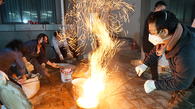 “出窯啦!”伴隨著幾聲歡呼,一個個剛剛熔融的陶藝作品,被從窯中夾出,放入裝有可燃物的鐵桶中時,頓時煙火翻騰,釉色金燦,給人一種...